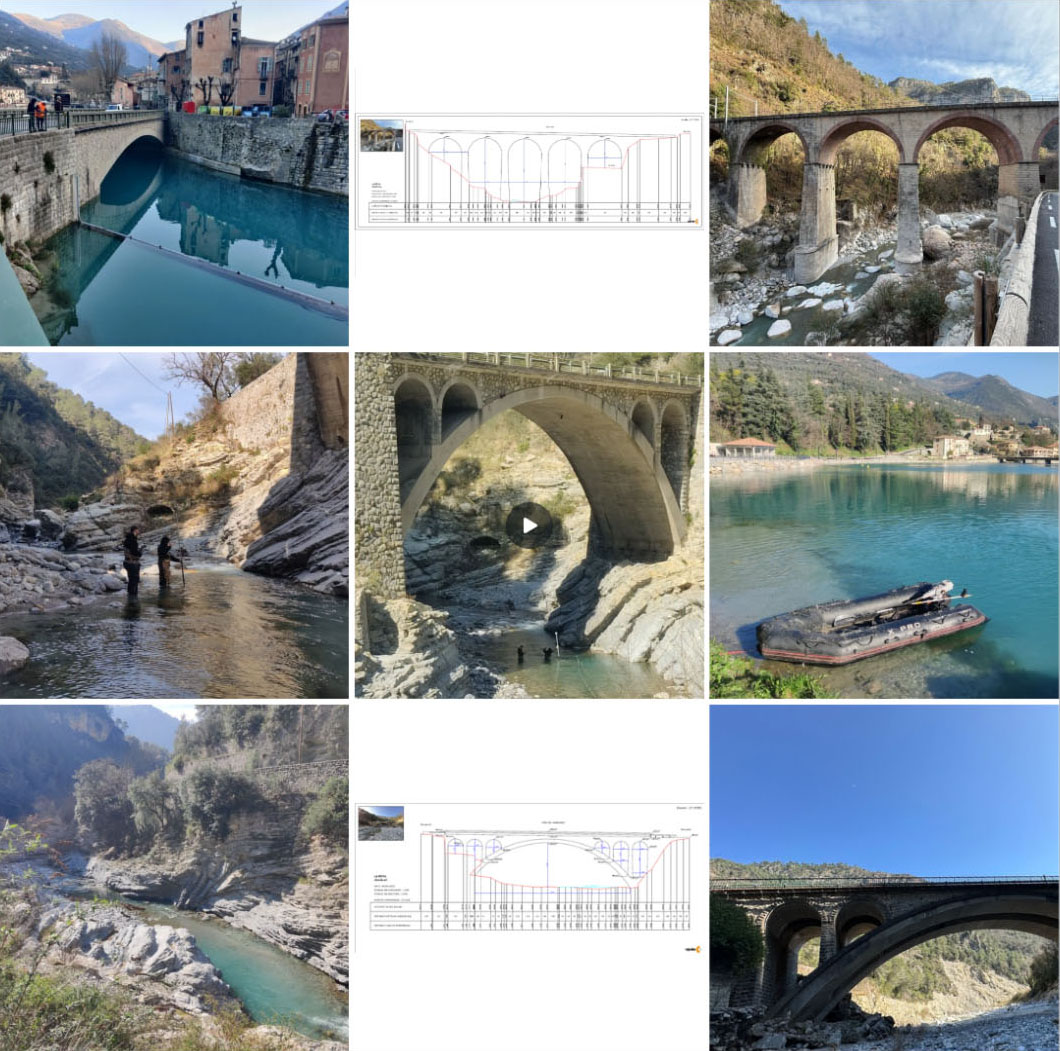 Mandatés par la Direction Départementale des Territoires et de la Mer des Alpes-Maritimes, nous avons réalisé des levés de profils en travers ainsi que des levés d’ouvrages d’art de la Roya.