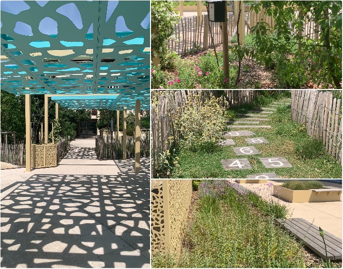 Située dans la Mairie du 6-8e, près des plages du Prado, cette place publique s’est transformée en îlot de verdure et de fraîcheur grâce à l’intervention du service hashtag#VRD Infrastructures et paysages d’OPSIA en 2024. Une trentaine d’arbres et plus de 300 arbustes plantés par idverde FR et l’installation d’une pergola imaginée par Arnaud FRANQUEVILLE et réalisée par Tôlerie Forezienne | TF URBAN ont permis d’ombrager la place. Le sol minéral a laissé place à des aménagements pratiques et ludiques intégrés dans des espaces renaturalisés : bancs de repos, marelle en bois, échiquier, boîtes à livres... La biodiversité a repris ses droits grâce à l'installation de nichoirs et hôtel à insectes à proximité d’une flore variée. Les habitants disposent aussi de plantes aromatiques et médicinales à portée de main.